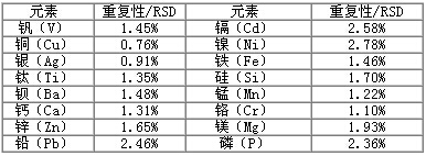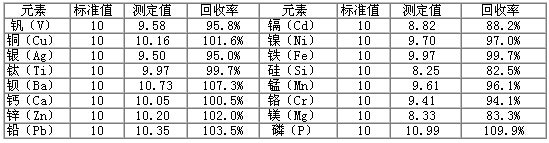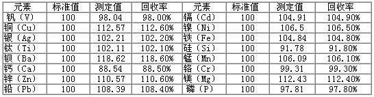 儀器自動點火后按照儀器工作條件設置好參數(shù)后,稀釋劑直接通過霧化器吸入霧室,進入等離子體,待儀器穩(wěn)定后依次測量空白溶液、標準溶液及已稀釋處理的樣品溶液,儀器根據(jù)工作曲線可直接得出最終樣品中各元素的含量。