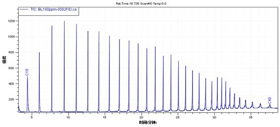 正癸烷到正四十烷(C10-C40)混標(biāo)濃度ρ=31000mg/mL (各正構(gòu)烷烴質(zhì)量濃度均為1000 mg/L),溶劑為正己烷(國家標(biāo)準(zhǔn)物質(zhì)網(wǎng));