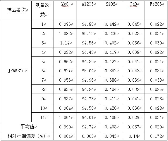 由以上測(cè)試實(shí)驗(yàn)數(shù)據(jù)可以看出,樣品重復(fù)測(cè)量11次的標(biāo)準(zhǔn)偏差符合客戶(hù)的要求,這也證明了X熒光光譜儀具有較高的測(cè)試精度,可以滿(mǎn)足耐火材料行業(yè)樣品測(cè)量穩(wěn)定性要求。